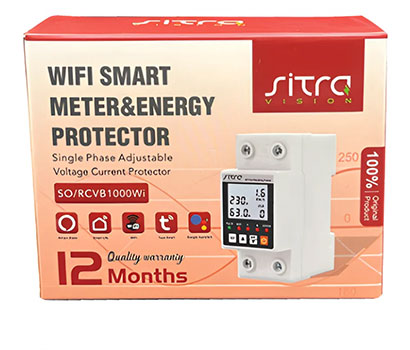 The Sitra SO/RCVB1000Wi Smart Voltage and Current Protector is a multifunctional device designed for complete protection of your electrical appliances. With a 63-amp capacity, Wi-Fi connectivity, remote control functionality, and a digital display, it keeps your power usage constantly monitored. The built-in residual current device (RCD) ensures the safety of both equipment and individuals. An ideal choice for homes, stores, villas, and even industrial environments.